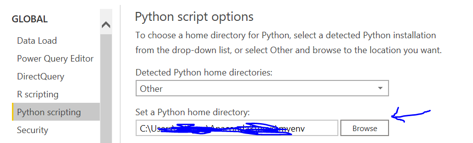 -> Navigate to your Power BI Options and then to the Python scripting.