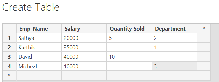 A new function was released quite recently on the Power BI. I personally believe this is very useful in terms of identifying the blanks() in row values and doing something about. Let us try understanding what it does first. Go ahead and create the table as shown below.