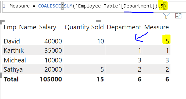 As you can see the department value for David Employee is empty. Now, if we do know David’s Department number. This can be placed out with the below function as shown.