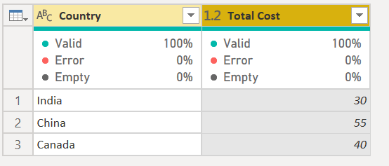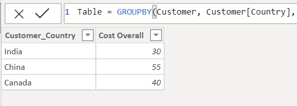 We will now get the above data as part of the grouping function. If you notice Total Cost for all Customers in each Country is Grouped and shown out.